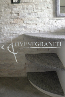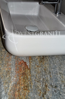 Particolare top bagno in pietra di luserna colore misto, finitura spazzolata.