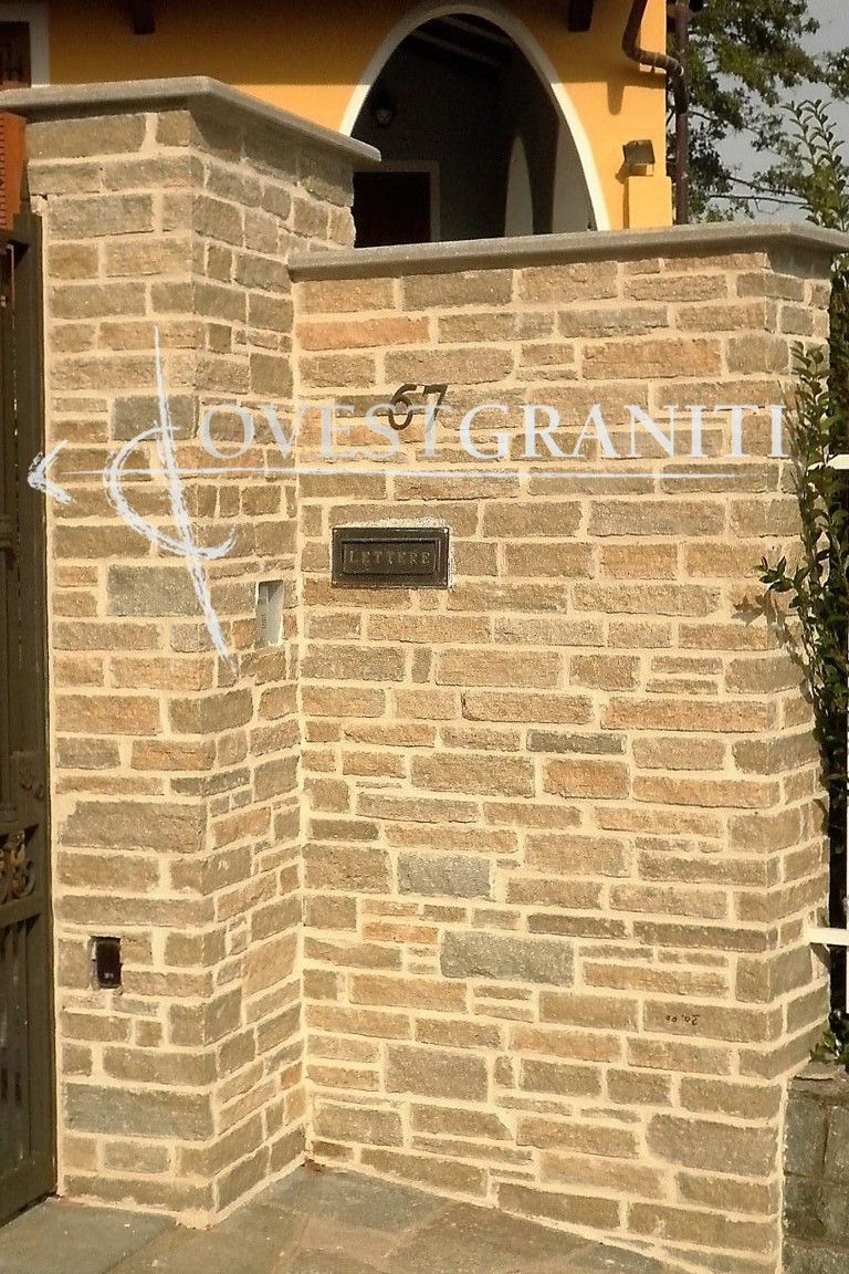 Rivestimento muro in "topure" di quarzite gialla posa con giunto.